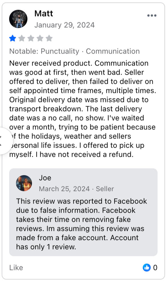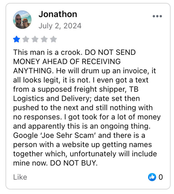 Joe Sehr Scammed Me